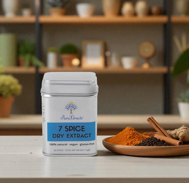 7 Spice Dry Extract Tin offers a convenient, single-serving blend of seven of the world’s most celebrated spices. Each stick pack combines turmeric, black pepper, ginger, cinnamon, cardamom, clove, and nutmeg into a highly concentrated, naturally flavoured powder. Perfect for busy mornings, travel, or post-workout routines, this vegan, 100% natural extract dissolves easily in drinks or food, delivering a vibrant aroma and warming flavour in a quick, practical format for daily enjoyment.