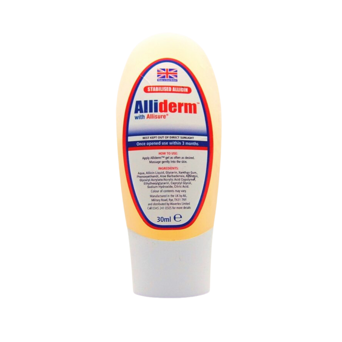 ALLIDERM® Gel is made by combining ALLISURE® allicin liquid with an aloe vera gel. ALLIDERM® Gel is the perfect complement to ALLICINMAX® capsules.