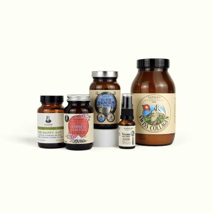 The Napiers Complete Reset Protocol is a comprehensive 4-week plan combining gut, energy, nutrient and structural support to help rebalance the body. It’s designed to give your system a structured reset, addressing digestion, cellular energy, skin and tissue health, and essential nutrient replenishment.