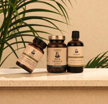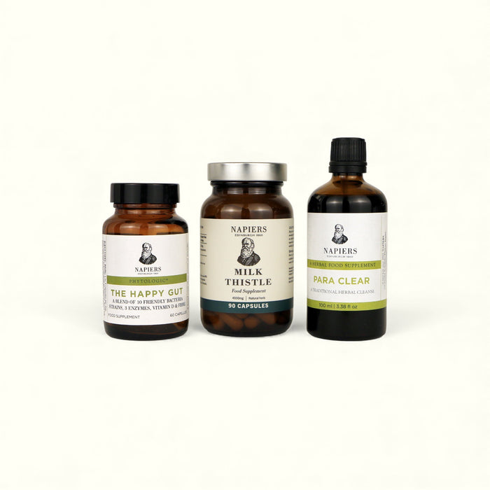 The Napiers Detox Protocol is a practitioner-formulated 4-week cleanse designed to support the body’s natural detoxification processes, digestive balance, and microbial harmony. Combining probiotics, traditional cleansing herbs and liver-supportive botanicals, this protocol promotes internal wellness gently and effectively.