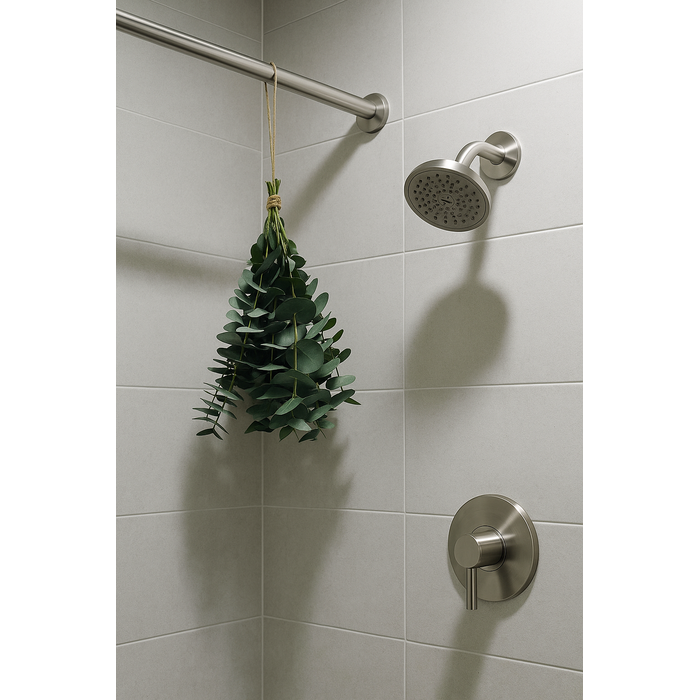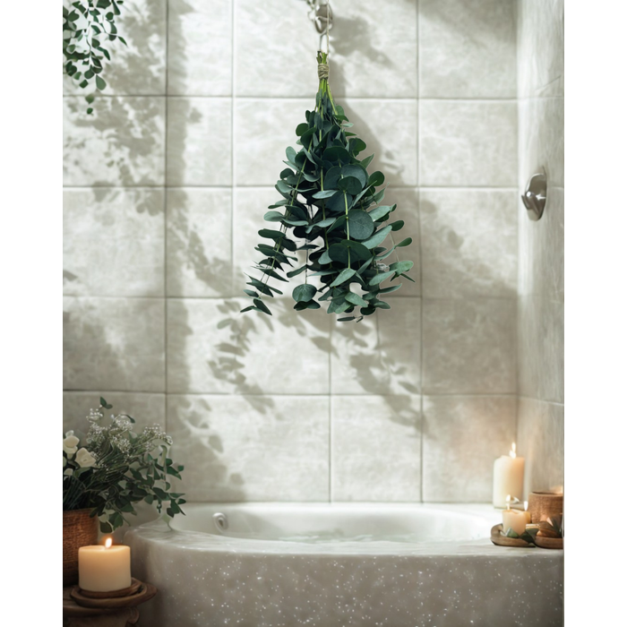 The hot steam of the shower or bath releases the essential oils within the eucalyptus, creating a clearing and soothing experience: