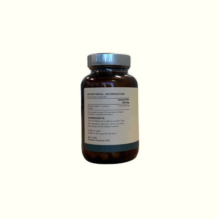 - • Provides 5 mg elemental lithium in a bioavailable form