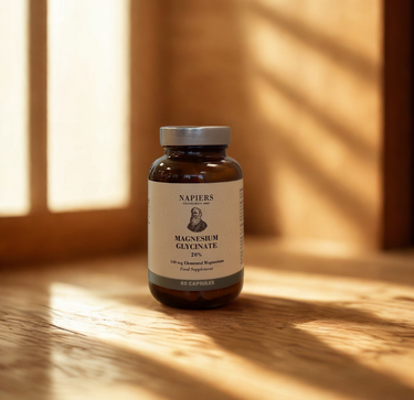 Napiers Magnesium Glycinate delivers 140 mg of elemental magnesium in a gentle, bioavailable form ideal for daily use. Designed for those seeking to support energy levels, muscle function, nervous system health and relaxation, this vegan-friendly formula is suitable for sensitive stomachs and easy to absorb.