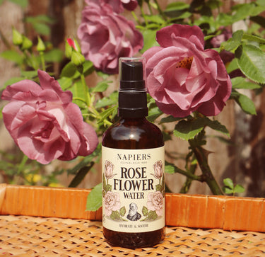 Napiers Rose Flower Water is a refreshing and lightly moisturising rose hydrosol spray that tones, soothes and hydrates the skin. Gentle and suitable for sensitive skin, it can be used daily as a facial toner after cleansing, as a cooling mist after sun exposure or shaving, or as a hydrating spritz throughout the day.
