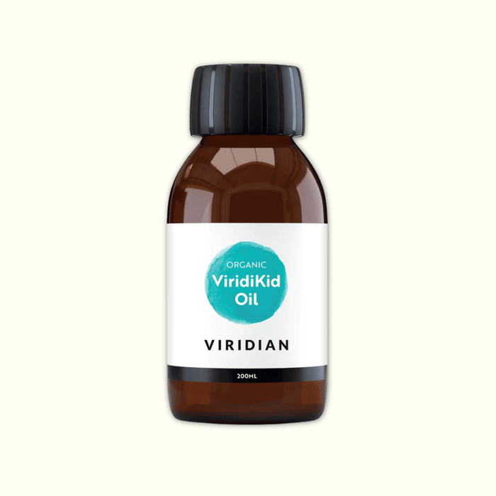 Viridikid Omega 3 Oil is a fish-free supplement designed especially for children. It blends flax seed, hemp seed, pumpkin seed, and avocado oils to provide a natural source of omega 3, 6, and 9 fatty acids. Rich in alpha linolenic acid (ALA), the body can convert this into DHA and EPA — with DHA contributing to the maintenance of normal brain function and vision. The formula also provides vitamin E, which helps protect cells from oxidative stress. With a pleasant taste, it can be taken directly from the spoon or easily mixed into drinks and foods.